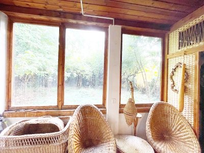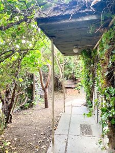 A 450 nm-es telek egy kis zöld búvóhely, ahová szinte saját erdejébe érkezik haza a tulajdonos. A kert végében masszív szerkezetű nyitott, de fedett pihenőhely található, amely rendbe hozva nyárikonyhaként is használható. A ház mellé fedett kocsibeálló építhető. A ház igény szerinti felújítását, a kert saját elképzelés szerinti rendezését az új tulajdonos teljes mértékben az igényeihez igazíthatja.
