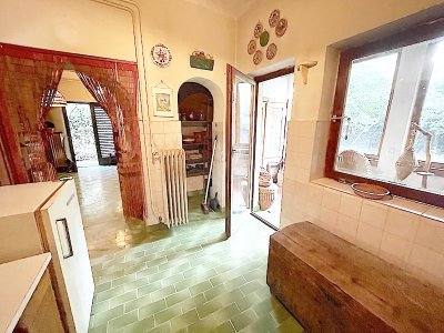 A földszinten jelenleg télikert, konyha, étkező, kamra, fürdőszoba, előszoba és 2 nagy méretű szoba, az emeleten 4 kisebb szoba, közlekedő és wc található. Többgyermekes családnak, szülőkkel költöző fiataloknak jelenlegi elosztásában is kiváló.