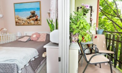 A hálószobából nyíló erkély a társasház kertjére néz, ahol lombos fák biztosítják a nyugalmat és a természet közelségét. A lakás egész nap világos.