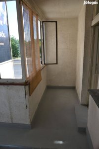 Kassai téren liftes csúsztatott zsalus társasházban, 74,5 m-es, első emeleti, jó elosztású, 2+2 félszobás, étkezős, loggiás lakás eladó.